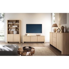 PACK SALÓN BARI ESENCIAL - DISEÑO ATREVIDO, TECNOLOGÍA Y ROBLE VICENZAEL PACK SALÓN BARI ES EL CONJUNTO PERFECTO PARA QUIEN BUSCA UN AMBIENTE MODERNO, IMPONENTE Y COORDINADO. CON EL ACABADO EN ROBLE VICENZA, QUE CONFIERE UNA TEXTURA CÁLIDA Y ACOGEDORA, ESTE PACK COMBINA LA ELEGANCIA DE LAS CURVAS LATERALES BARI CON LA PRACTICIDAD DE SUS MECANISMOS PREMIUM.• MUEBLE TV 3 PUERTAS BARI: SOLUCIÓN ROBUSTA Y DE DISEÑO PARA EL ENTRETENIMIENTO (A 168 X AL 52 X P 39CM), CON TRES PUERTAS DE ALMACENAMIENTO DISCRETO.• APARADOR BARI (2 PUERTAS + 3 CAJONES): PIEZA CENTRAL CON GRAN CAPACIDAD DE ALMACENAMIENTO (A 168 X AL 84 X P 39CM), PERFECTO PARA VAJILLAS Y TEXTILES DE MESA.• ELEMENTO ESTANTERÍAS BARI: ESTRUCTURA VERTICAL DE DESTAQUE (A 103 X AL 170 X P 39CM), IDEAL PARA EXHIBICIÓN DE LIBROS Y OBJETOS DE DECORACIÓN.• SISTEMA PUSH TO OPEN: TODAS LAS PUERTAS Y CAJONES DEL PACK POSEEN EL SISTEMA PUSH TO OPEN, GARANTIZANDO UN ASPECTO MINIMALISTA SIN TIRADORES Y UN MANEJO FÁCIL.• ACABADO ROBLE VICENZA: EL COLOR CÁLIDO Y TEXTURIZADO DEL ROBLE VICENZA CREA UN AMBIENTE ACOGEDOR Y CONTEMPORÁNEO.• CALIDAD BARI GARANTIZADA: INCLUYE CANTOS DE ABS DE ALTA RESISTENCIA Y GUÍAS TELESCÓPICAS DE LARGA DURACIÓN.¡TRANSFORME SU SALÓN CON LA PRESENCIA DISTINTA, EL ALMACENAMIENTO COORDINADO Y EL TOQUE DE ELEGANCIA DEL PACK BARI EN ROBLE VICENZA!