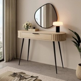 TOCADOR LOVI - BELLEZA, PRACTICIDAD Y ESTILO REDONDEADOEL TOCADOR LOVI ES LA PIEZA ESENCIAL PARA CREAR UN ESPACIO PERSONAL DE CUIDADO CON ELEGANCIA Y MUCHA LUZ. SU DISEÑO ARMÓNICO, CON LOS LATERALES REDONDEADOS CARACTERÍSTICOS DE LA COLECCIÓN, COMBINA LA FUNCIONALIDAD DE UN CAJÓN CON LA BELLEZA NATURAL DEL ROBLE CREMONA.MEDIDAS: ANCHO 120 CM X ALTO 80,2 CM X FONDO 40,2 CM.DISEÑO EXCLUSIVO: DESTACA POR LOS LATERALES REDONDEADOS Y EL FORMATO SUAVE QUE SE INTEGRA PERFECTAMENTE EN CUALQUIER DORMITORIO, CONFI-RIENDO UN ESTILO ORIGINAL Y SOFISTICADO.ACABADO NATURAL: LOS TONOS SUAVES Y NATURALES DEL ROBLE CREMONA ILUMINAN EL INTERIOR, PROPORCIONANDO UNA SENSACIÓN DE FRESCURA Y BIENESTAR.ALMACENAMIENTO PRÁCTICO: INCLUYE UN CAJÓN AMPLIO (INDICADO POR '1S') PERFECTO PARA GUARDAR MAQUILLAJE, JOYAS O ACCESORIOS PERSONALES, MANTENIENDO LA SUPERFICIE ORGANIZADA.TOQUES DE MODERNIDAD: LAS PATAS Y LOS TIRADORES METÁLICOS EN NEGRO COMPLEMENTAN EL ASPECTO GENERAL CON UN CONTRASTE MODERNO Y ROBUSTO.MECANISMO PUSH TO OPEN: EL CAJÓN POSEE SISTEMA DE APERTURA POR PRESIÓN (PUSH TO OPEN), GARANTIZANDO UN MANEJO SUAVE Y UN ASPECTO MINIMALISTA SIN TIRADORES VISIBLES.¡TRANSFORME SU RINCÓN DE BELLEZA EN UN ESPACIO EXCEPCIONALMENTE ELEGANTE CON EL TOCADOR LOVI!