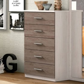 • ESTRUCTURA DE MELAMINA.• 5 CAJONES.• ACABADO MATE.• DISEÑO VINTAGE.