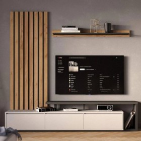 ESTANTERÍA COMPLETA CON PANEL DECORATIVO – DISEÑO MODERNO Y FUNCIONALLA ESTANTERÍA COMPLETA WENDY DESTACA POR SU ESTILO CONTEMPORÁNEO Y SU GRAN FUNCIONALIDAD. EL PANEL DECORATIVO DE MADERA APORTA SOFISTICACIÓN AL ESPACIO, MIENTRAS QUE LA BALDA SUPERIOR ES PERFECTA PARA EXPONER LIBROS U OBJETOS DECORATIVOS. LA ESTANTERÍA INCLUYE UN AMPLIO MUEBLE INFERIOR CON PUERTAS DE ALMACENAJE, GARANTIZANDO ORGANIZACIÓN Y ELEGANCIA EN EL SALÓN.• DISEÑO MODERNO Y FUNCIONAL.• PANEL DECORATIVO DE MADERA QUE APORTA UN TOQUE DE SOFISTICACIÓN.• BALDA SUPERIOR PARA LIBROS Y OBJETOS DECORATIVOS.• MUEBLE INFERIOR CON ESPACIO DE ALMACENAJE CERRADO.• DIMENSIONES: ANCHURA 225CM | ALTURA 210CM | FONDO 38CM.UNA SOLUCIÓN COMPLETA PARA QUIENES BUSCAN ESTILO, ORGANIZACIÓN Y CONFORT EN EL SALÓN.